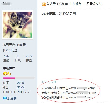 再來說說論壇外鏈,論壇的互動性極強(qiáng),通常是以發(fā)帖回帖的形式吸引用戶的參與,但是這種方式能給網(wǎng)站帶來權(quán)重或流量嗎?答案是肯定的,奇億小編舉個自身在tui18論壇發(fā)帖的例子,相信大家就明白了。論壇帖子,通常會收到“支持樓主”、“感謝分享”等等這一類的回復(fù),這時別人有沒有用心看你的文章似乎顯得不太重要,他們這樣做的目的主要還是外鏈。除了本身發(fā)帖可以添加外鏈,論壇簽名一般可以帶上鏈接,只要你參與回帖,又可獲得一個外鏈的機(jī)會。效果較好的外鏈論壇有:tui18,阿里,seo論壇,新浪等。