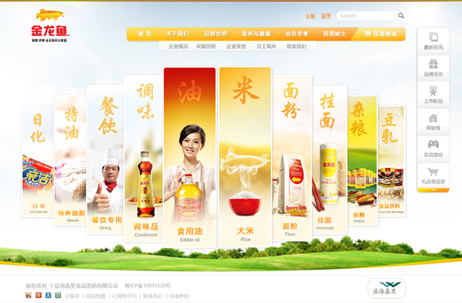 產品涵蓋了小包裝食用油、大米、面粉、掛面、調味品、雜糧、豆奶、餐飲用油、特種油脂、油脂化工等10大領域,旗下16個品牌在金龍魚的帶領下,都已成為每一個專業領域內的知名品牌。