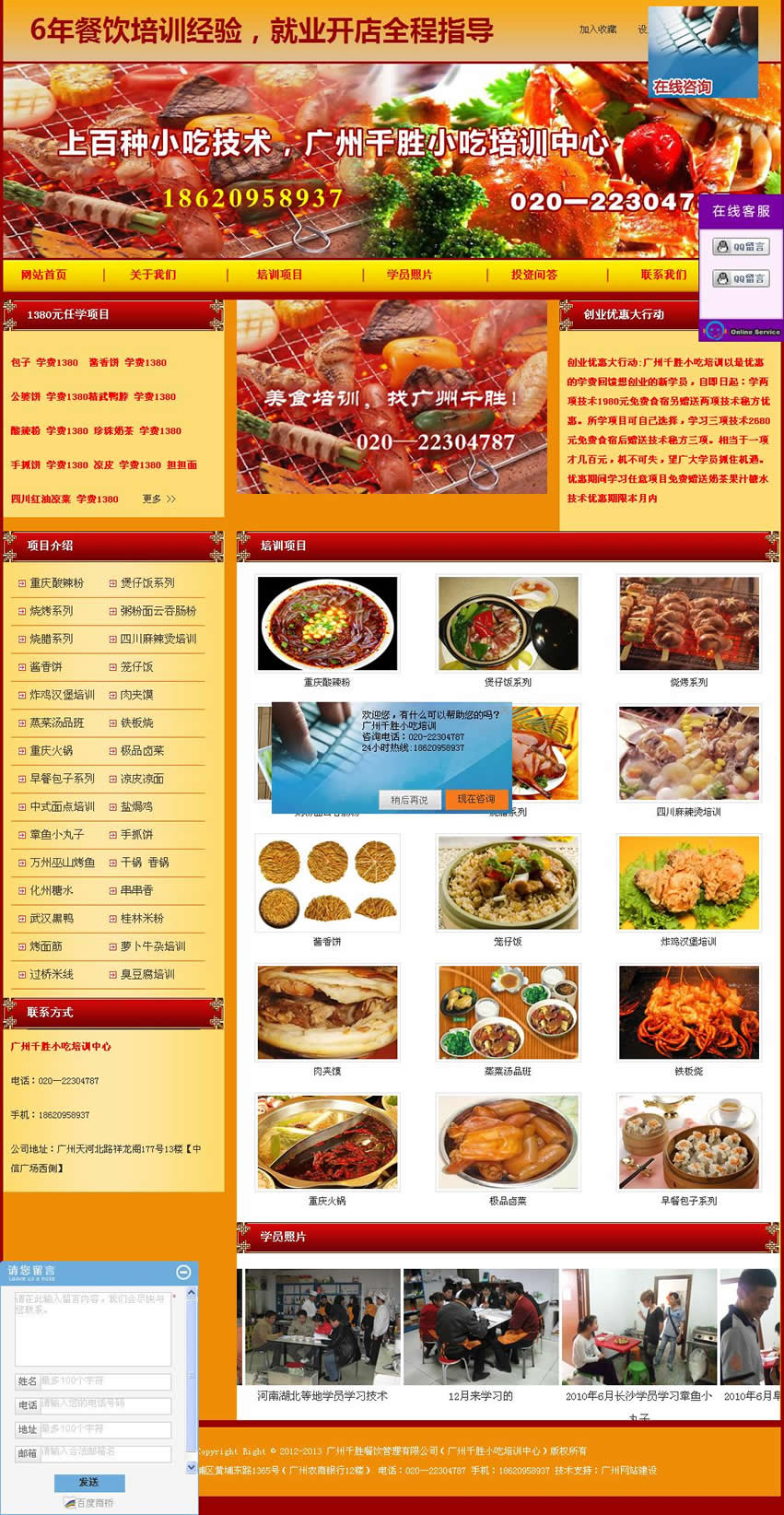 廣州千勝小吃培訓中心座落在風景秀麗的廣州天河區。專業從事飲品、特色小吃、地方小吃、私房菜、地方特色飲食的培訓研究機構,擁有多名專業培訓老師,都擁有精湛的技術和豐富的開店經驗。中華美食源遠流長,博大精深。五千年傳統文化成就了多種不同的美食文化,廣州千勝小吃培訓中心作為餐飲行業里的嬌嬌者,為傳承中華美食文化,匯集國內外餐飲食品行業研發,教育培訓,運營管理,餐飲策劃,特色小吃培訓等各方面的專家學者。從事美食文化的傳播與推廣工作,以倡導美食新概念和標準化。把“傳統與時尚,美味與健康”完美結合,把美食制作推向簡易和標準化的新高度,讓每一個人都會做美食,使客戶達到零風險創業,創造高回報的價值,真正達到相互共贏。